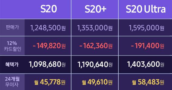 갤럭시 S20 삼성닷컴 사전예약 가격 할인 혜택