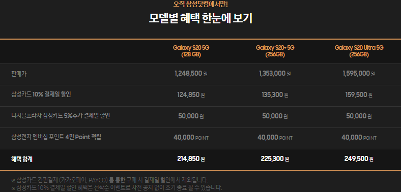 삼성닷컴 갤럭시 S20 일반 구매 고객 혜택