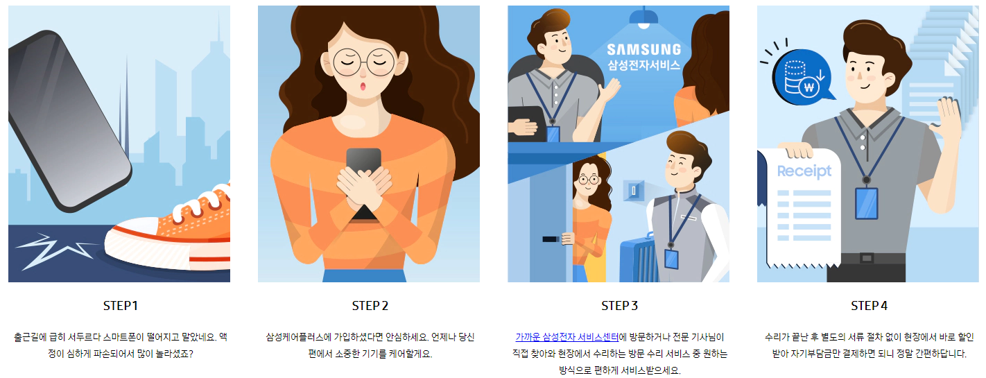 삼성 케어 플러스 가입 방법 및 수리 방법