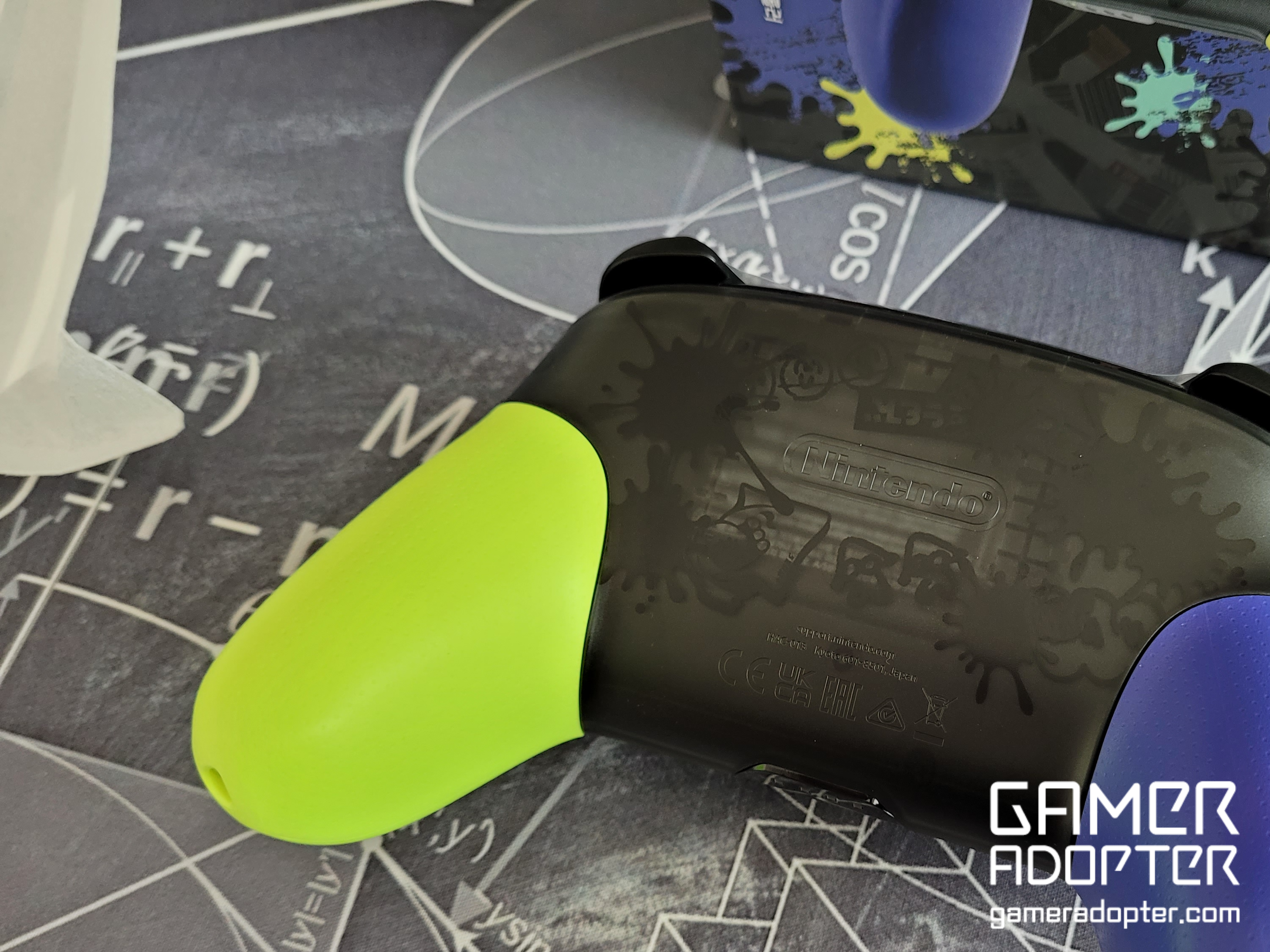 스플래툰3 프로콘 실물입니다. 실제로 본 순간 아 역시 구매하길 잘했다는 생각이 들 정도로 너무 이쁘다고 생각됩니다. 개인적으로 스플래툰2 프로콘은 손잡이 부분이 핑크와 녹색이었는데 둘 다 좋아하는 색상이 아니라 구매할 생각이 전혀 들지 않았었는데 이번 프로콘은 스플래툰3 메인 컬러와 너무 잘어울립니다.