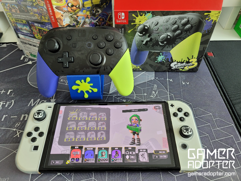 7월말에 예약 구매해뒀던 스플래툰3 프로콘이 도착했습니다. 원래 휴대모드로만 사용할 생각으로 작년에 닌텐도 스위치 OLED모델을 구매했었는데 프로콘이 하나쯤 갖고싶었지만 가격이 너무 비싸서 참고있었는데 이번에 스플래툰3 에디션 프로콘 디자인을 본 순간 구매를 안할수가없더라구요.