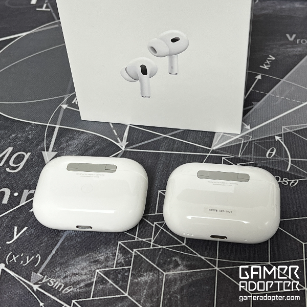 후면 및 페어링 버튼 등은 에어팟프로 1세대나 2세대나 별 다른 차이가 없는 모습입니다.