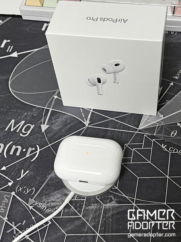 역시 맥세이프를 지원하는 케이스여서 촥! 하고 충전기에 붙고 충전기에 붙이면 띵! 하고 충전 사운드가 하단 스피커로 출력되는 점이 신기했습니다. 추가로 에어팟프로 2세대는 맥세이프 충전기 뿐만 아니라 애플 워치 충전기에도 충전이 된다고 합니다.