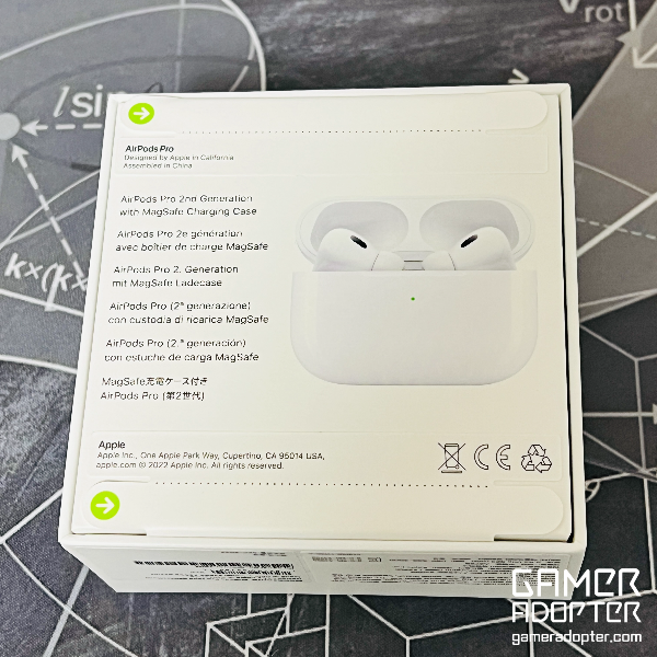 에어팟 유닛 부분을 만져보면 양각으로 입체감있게 처리된것도 1세대와 동일합니다. 박스 후면을 보면 AirPods Pro 2nd Generation with MagSafe Charging Case 라고 제품명이 써있기때문에 에어팟프로 2세대 와 맥세이프 충전이 가능한 케이스가 포함된 걸 알 수 있습니다.