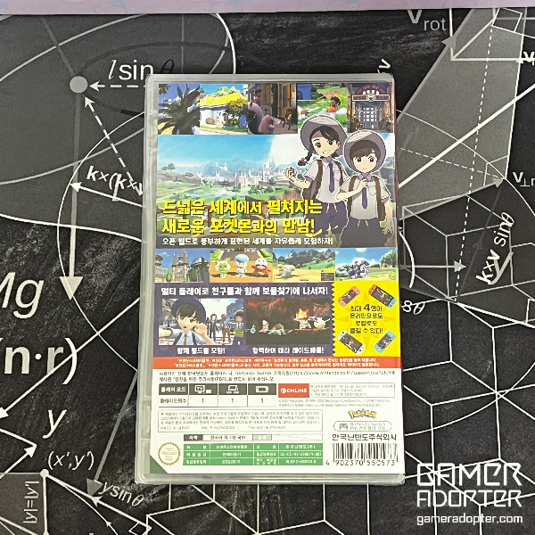뒷면은 교복을 입고 있는 9세대 주인공들의 모습과 스타팅포켓몬, 다양한 컨텐츠들을 간략하게 소개하고 있습니다.