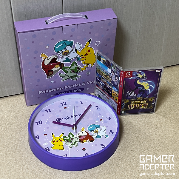 구매하고 나니 왠지 모르게 벽시계를 구매했더니 게임칩을 사은품으로 받은 느낌이 들기도 하지만 우선 오늘의 주인공인 포켓몬스터 바이올렛 패키지부터 살펴보겠습니다.