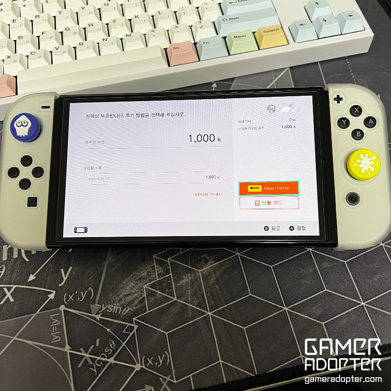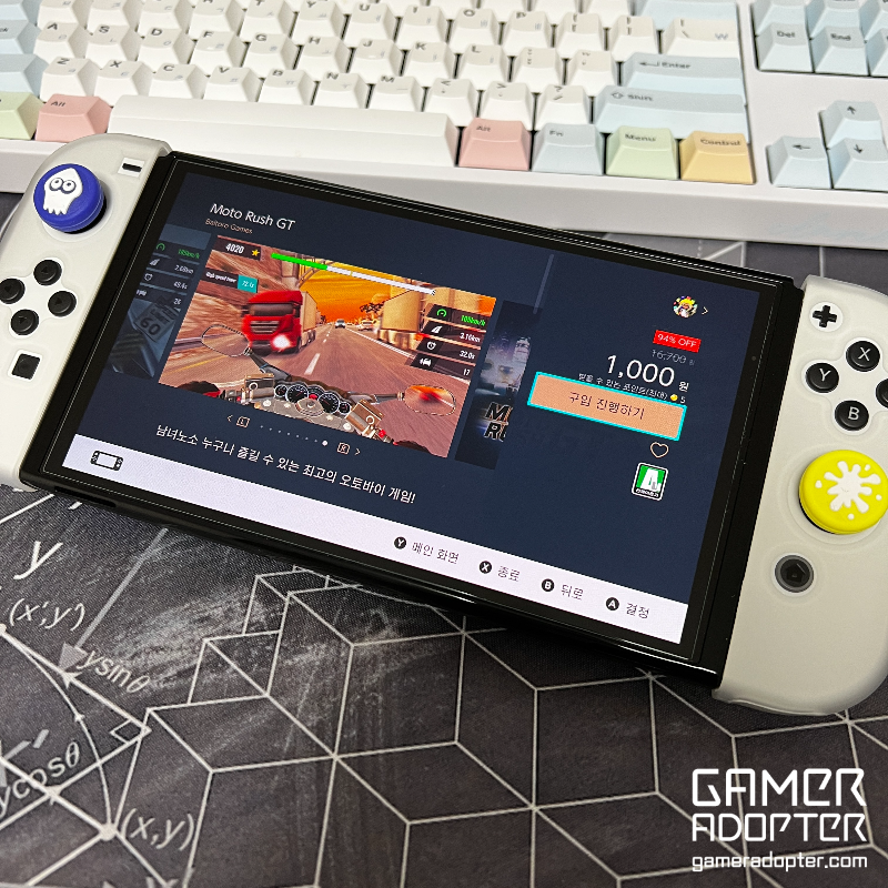 먼저 닌텐도스위치에서 e숍에 접속해 구매 할 게임을 찾아보겠습니다. 딱히 구매하고 싶은 게임은 없고, 일종의 카카오페이 결제 테스트 느낌으로 구매하는 것이기 때문에 1000원짜리 저렴한 게임인 Moto Rush GT를 구매해보겠습니다.