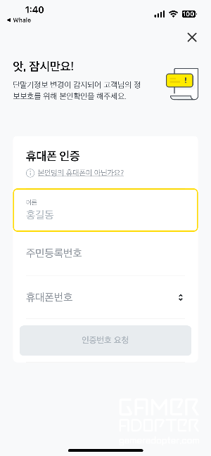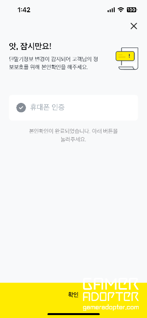 저만 그런지 모르겠는데 카카오페이로 열기를 눌렀더니 단말기 정보 변경이 감지되었다며 본인 확인을 해달라고합니다. 귀찮지만 휴대폰 인증을 완료해주겠습니다.