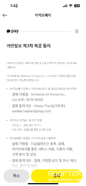 닌텐도스위치 e숍 카카오페이 계정 설정이 완료되었습니다.