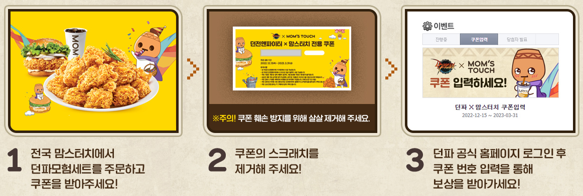 맘스터치 던파 쿠폰 보상