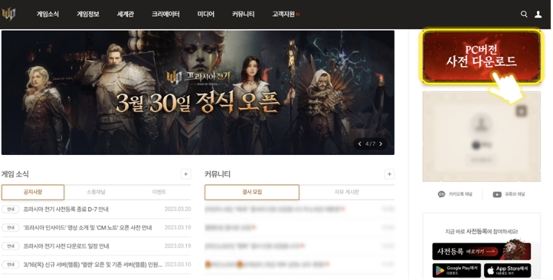넥슨의 상방기 기대작 모바일 MMORPG 프라시아 전기 출시일이 3월 30일 0시 정식 출시를 앞두고 프라이사 전기 PC 버전 사전다운로드가 오늘부터 시작되었습니다.