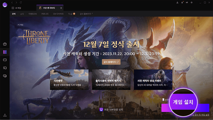 엔씨소프트의 최신 MMORPG 쓰론앤리버티가 12월 7일 목요일 출시일을 앞두고 PC 사전 다운로드를 시작했습니다. 쓰론앤리버티의 경우 모바일로는 출시 하지 않고 오직 PC에서 자사의 퍼플 런처를 통해서만 설치 및 플레이가 가능합니다.