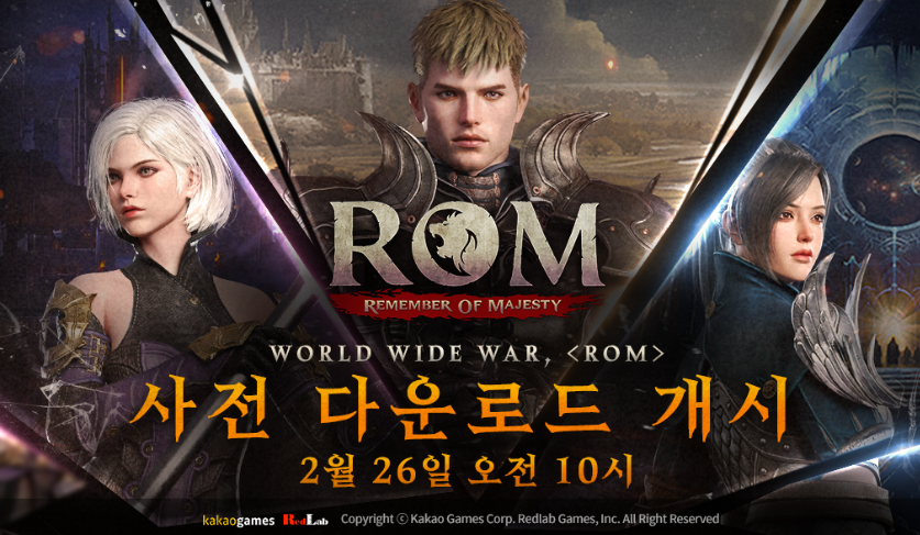 레드랩게임즈에서 개발하고 카카오게임즈에서 서비스하는 2024년 상반기 모바일 MMORPG 기대작 롬 리멤버 오브 마제스티의 글로벌 출시일이 2월 27일 오전 10시로 확정되었고, 하루 전인 2월 26일 부터 안드로이드, iOS 그리고 PC버전 사전 다운로드를 시작합니다.
